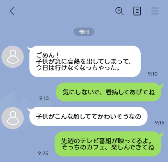 ママ友から「子供が急に高熱を出して行けなくなった」と突然のキャンセル連絡。