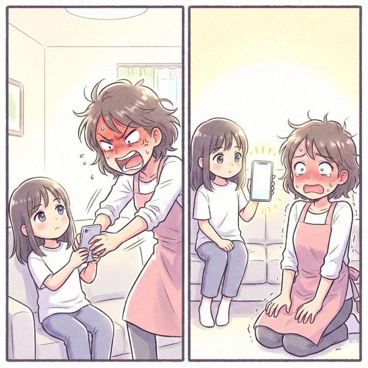 「あなた、将来をどう考えているの?友達とメッセージをやり取りしたり、動画を見たりしている暇なんてないはずでしょ!お母さんの頃は、机に向かって参考書をボロボロにするのが当たり前だったのよ。今のあなたの姿は、ただ遊んでいるようにしか見えないわ」