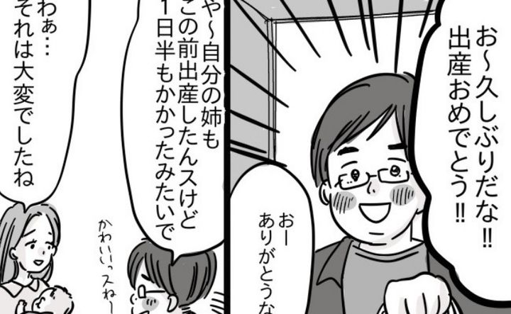 「早っ! ラクなお産でよかったですね」産後、夫の友人が笑顔で一言。次の瞬間、夫が反論!すると友人が