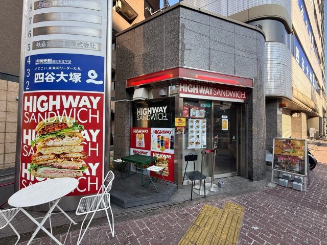 最寄駅は白金高輪駅、古川橋そばにあるHIGHWAY SANDWICHです。大きい看板が目印。絶対に見落としません。