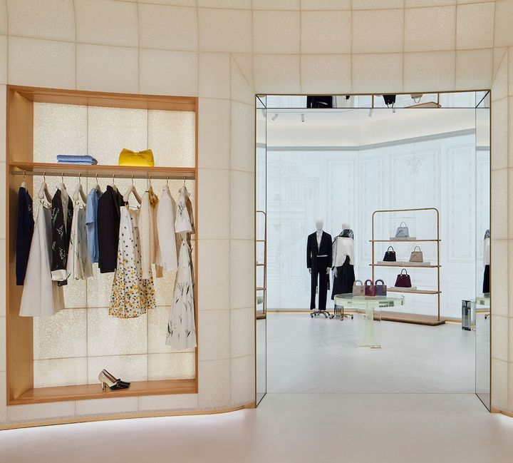中央の広大なスペースを中心に広がるのは、ジョナサン・アンダーソンによるメンズおよびウィメンズのプレタポルテをはじめ、レザーグッズ、シューズ、アクセサリー、ファインジュエリー、さらにはメゾンを象徴するクリエイションのオーダーメイドルームまでを網羅する多彩なユニバース。天然素材と洗練されたカラーパレットが調和し、時代を超越したシンプルさとモダンな感性が共存する空間が描き出されている。