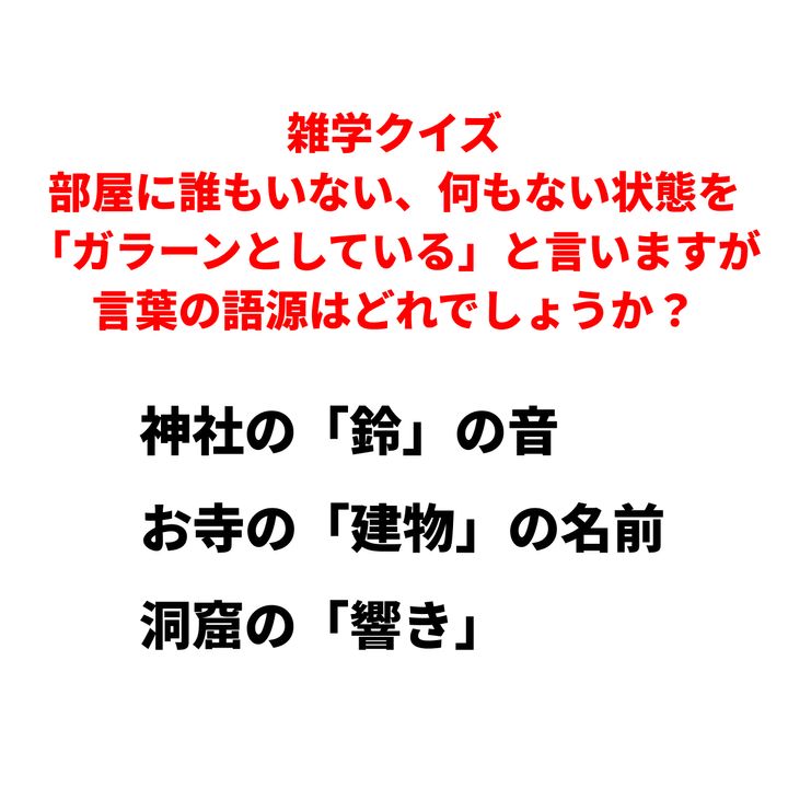 3. 【雑学クイズ3選】「知っているようで意外と知らない」部屋がガラーンとしている、このガラーンという言葉の語源はなんでしょうか?