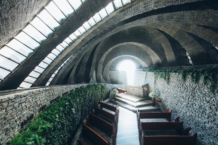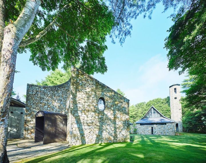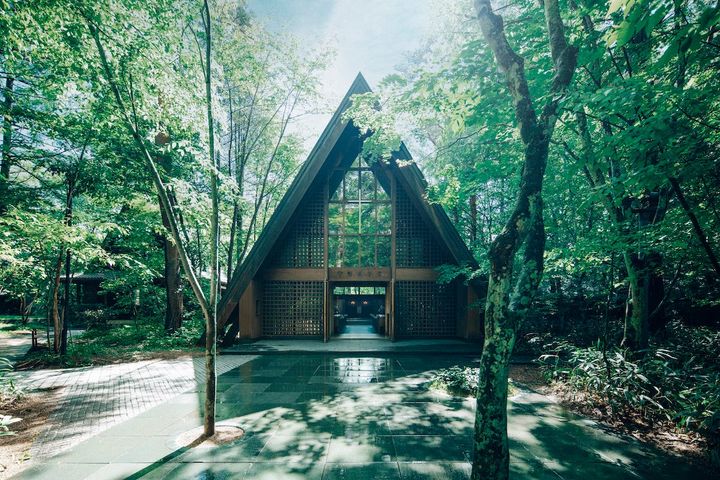 軽井沢にある「石の教会 内村鑑三記念堂」は、360度が豊かな森に囲まれた教会。建物が自然の一部となるように造られており、石とガラスが折り重なるように、太陽の軌道に合わせて東から西へアーチが描かれるようにデザインされています。