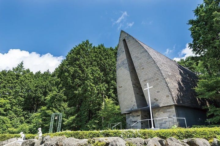 第29回東京建築賞優秀賞を受賞したという「箱根の森高原教会」の建物は、モダンな石造りの外観が印象的。周囲の緑と美しく溶け合いながら、教会らしい厳粛な雰囲気をたたえています。