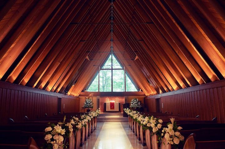 英国国教会の正統を受け継いで建てられた「旧軽井沢礼拝堂」。四季折々の美しさを見せる旧軽井沢の森にひっそりと佇んでいます。司祭とのオリエンテーションなどもあり、本物の教会で挙式をあげたいと希望するふたりにぴったり。
