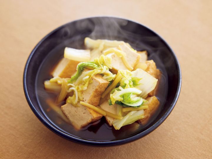 今の季節に欠かせない白菜と一緒に煮れば、食卓がほっと和む一皿に。しょうがをきかせただしがじゅわっとしみて、寒い日にもうれしい味わいです。