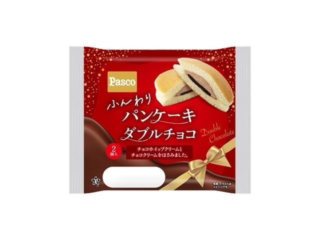 ふんわりしたパンケーキ生地でチョコホイップクリームとチョコクリームを挟みました。2個入です。 日本の小麦100%です。 カロリー:183kcal 【販売地域】関西・中国エリア/中部エリア/四国エリア