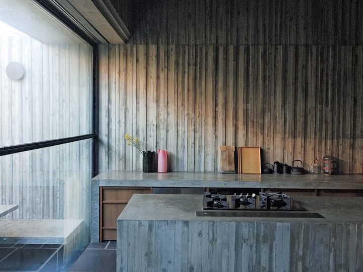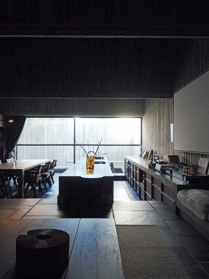 建築家・谷尻誠さんの自邸は、まさに暗さを楽しむ家である。2021年に竣工した「HOUSE T」は、洞窟にいるかのような陰影が特徴的で、玄関から奥に向かうにつれ、昼間でも照明をつけたくなる陰りのある空間が広がる。そして、北側に大きく開けた窓からは安定した光が差し込み、しっとりとしたあわいを生み出している。
