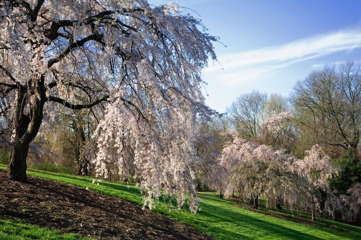 なかにはアメリカでは珍しい、「しだれ桜」も。開花時期は3月~5月と長く、見ごろは4月の1カ月間。