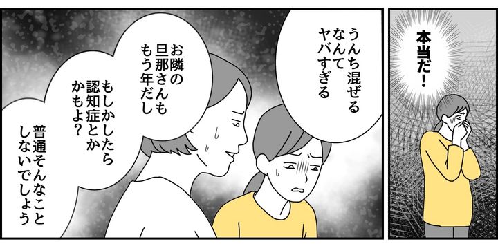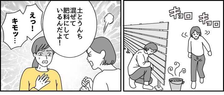私はマリカ(33)。実家の目の前に住んでいます。うちの隣で、実家の斜め向かいにAさんという80代の夫婦が住んでいるのですが……。家から1歩出ればうんち臭いし、窓を開けて換気をしようものならうんちのニオイが家にも入ってきます。母は「Aさんの家が家庭菜園をはじめてから悪臭がする」と言いますが、家庭菜園でこのニオイがするなんて聞いたことがありません! 妹のハルミ(30)に相談すると……。