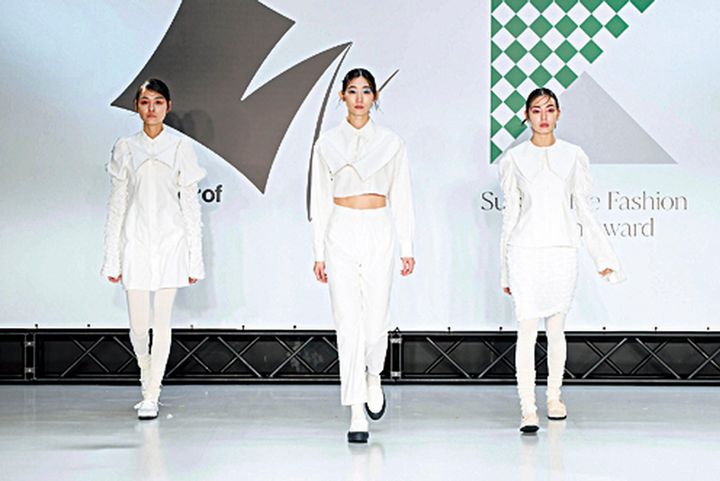 東京都主催、若手育成のためのファッションコンクール「Next Fashion Designer of Tokyo」受賞作。スタイは3Dプリンターを使ってエナメルで製作。 東京都産業労働局提供