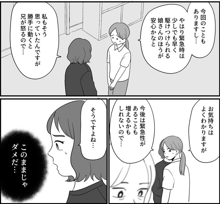 私としては、母の家の近くに住んでいて、すぐに動ける私が中心になるべきだと思うのですが……。