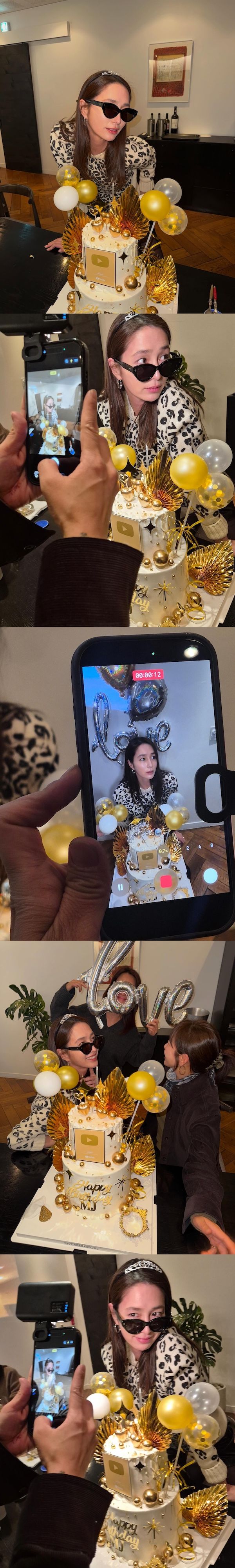 また、バースデーケーキにはイ・ミンジョンのYouTubeチャンネル登録者数100万人達成を応援するかのような「金の盾」の装飾があしらわれており、ファンの視線を集めた。