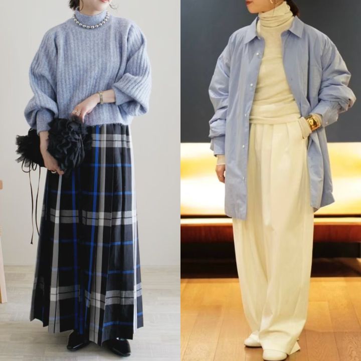 あったかコーデも、ホワイト&ブルーで爽やかに