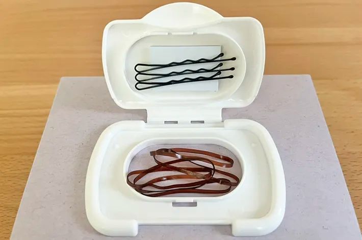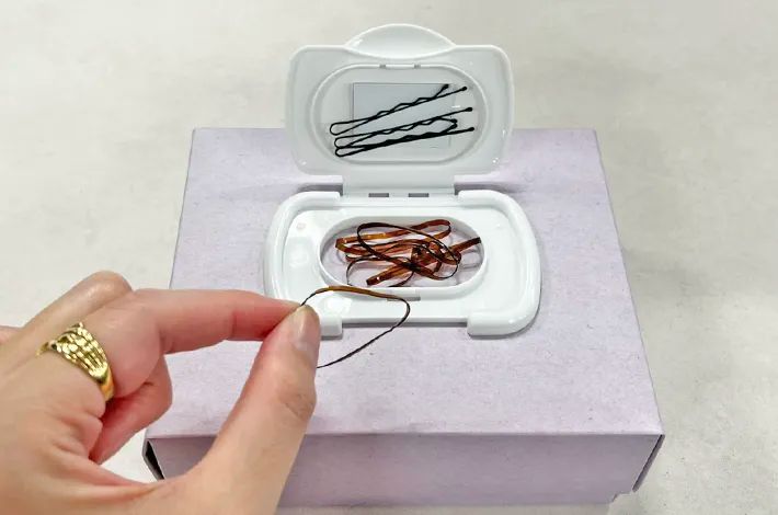 筆者はちょっとした外出の時は、小さなヘアゴムとヘアピンだけで髪をまとめることが多いです。そのため、蓋をパカッと開くだけで必要なものがサッと取り出せるのは、とても便利!