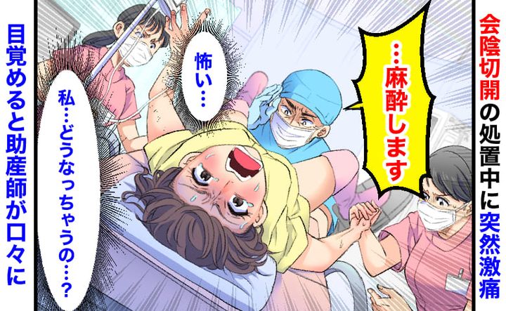 医師「麻酔をします…」産後の会陰切開の処置中、突然激痛。医師の顔が曇り…目覚めると助産師が口々に