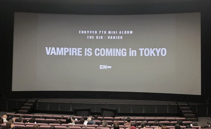 今回のイベントは、ENHYPEN 7th Mini Album『THE SIN : VANISH』の発売を記念して開催。同アルバムは、人間とヴァンパイアが共存する世界で、愛のためにタブー(禁忌)を破って逃避する恋人の物語を描いた作品です。この日は、メンバーとENGENEがともに『THE SIN : VANISH』のコンセプトシネマをスクリーンで鑑賞するという、なんともスペシャルなイベント♡ すでにソウル・香港では開催されており、日本での実施は待望の機会に!!