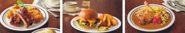 “ハリウッドの非日常感あふれる映画スタジオのカフェテリア”のコンセプトはそのままに、BBQポークリブやハンバーガーなど、“THE アメリカン”なメニューが勢ぞろいします。
