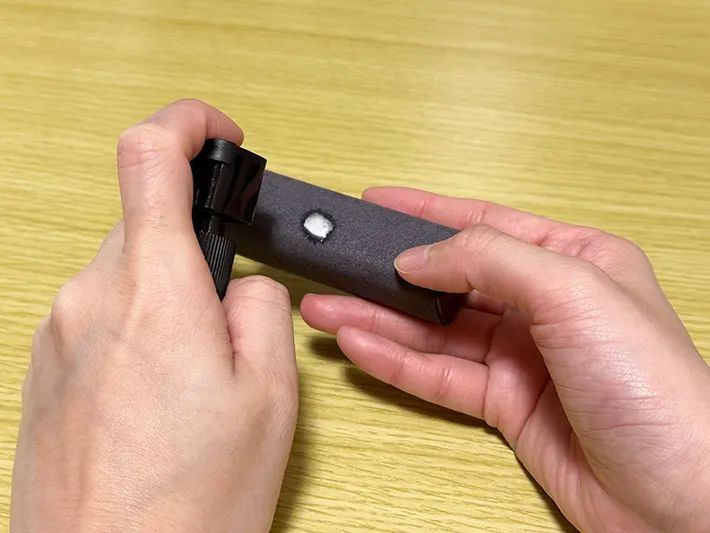 サイズは、縦と横が3cm、長さが9cmと手のひらに収まるサイズなので、ポーチやバッグのポケット部分に収納して持ち運べそうです。