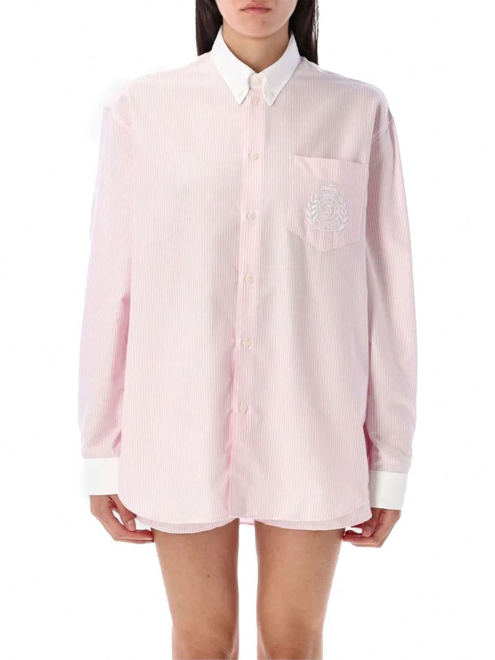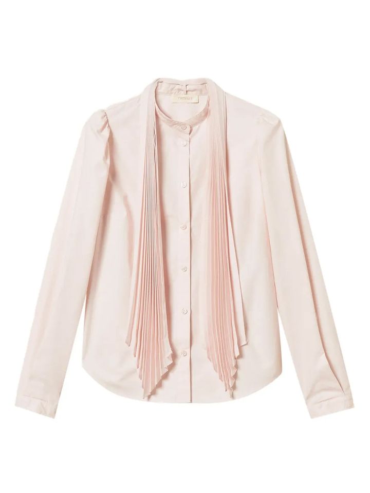 ワードローブの定番であるシャツは、ピンクを選んでモードなスタイルに取り入れたい。ボッテガ・ヴェネタBOTTEGA VENETA)のランウェイには、ピンクのシャツにホワイトのハイネックトップ、グレーのレザースカート、さらにグリーンのコートとバッグを合わせたスタイリングも。控えめなカラーが美しく調和していた。