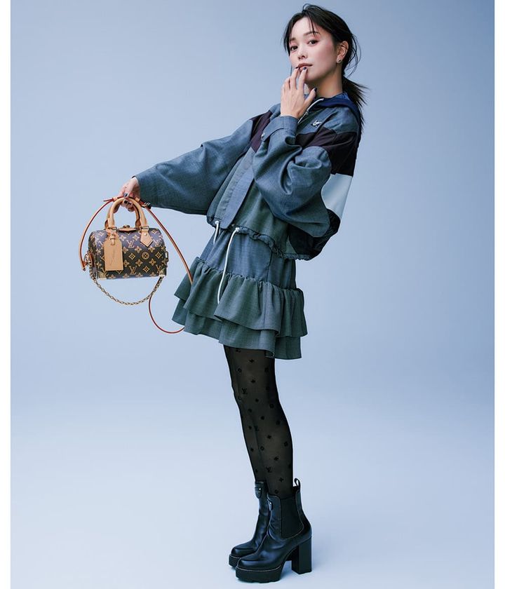 バッグ「スピーディ・トランク 20 (「モノグラム・アニバーサリー」コレクション)」W20.5×H13.5×T11㎝¥529,100ブルゾン¥720,500スカート¥311,300ショートブーツ¥273,900タイツ¥74,800ピアス¥81,400※参考価格(すべてルイ・ヴィトン/ルイ・ヴィトン クライアントサービス)