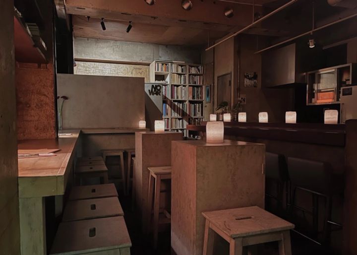 キャンドルの装飾がきれいなカフェでありながら、アート作品の展示も行う「実験的スペース」を併設したカフェ&バー。