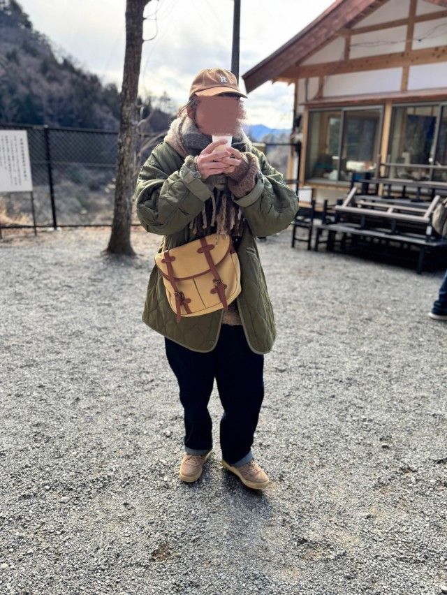 カーキと合わせる茶色マフラーのコーデ