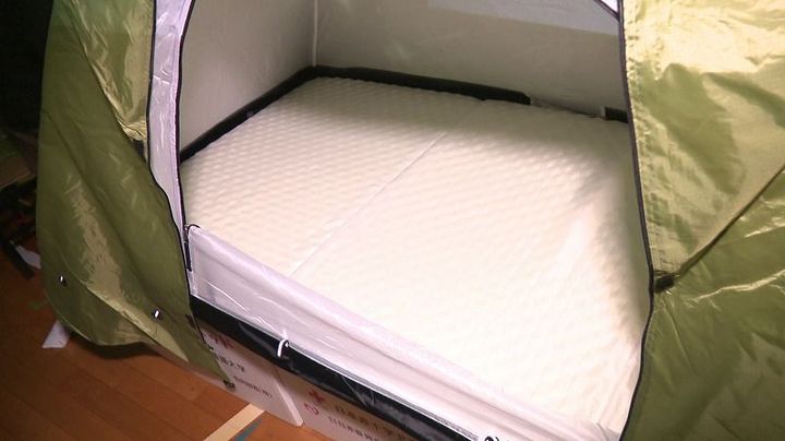さらに完成したベッドの上に1人用のテントを設置すれば保温効果が期待でき、プライバシーも確保できる「テント on the ベッド」の完成です。