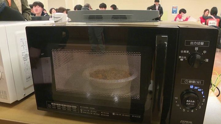 今回の演習では、蓄電池式の電子レンジを活用しました。冷凍食品はトレイのまま食べられるので、ごみが減らせます。
