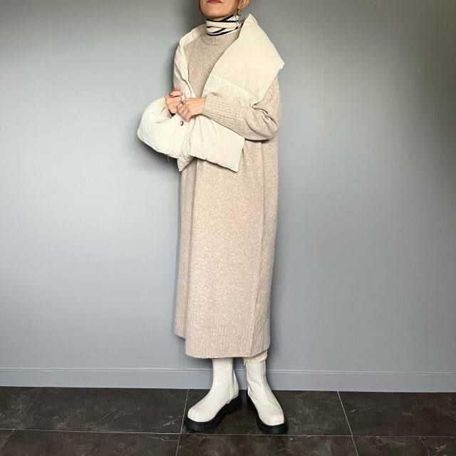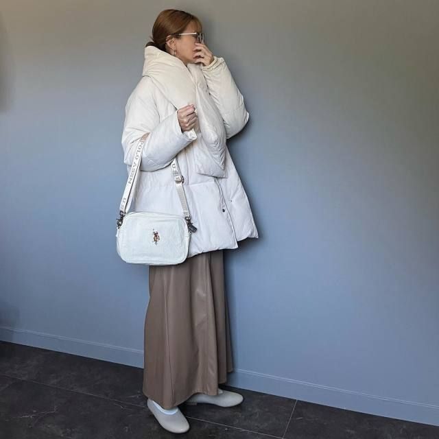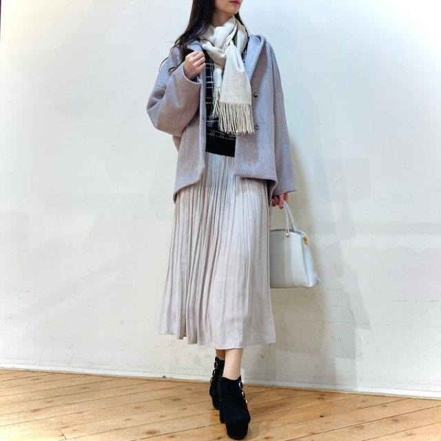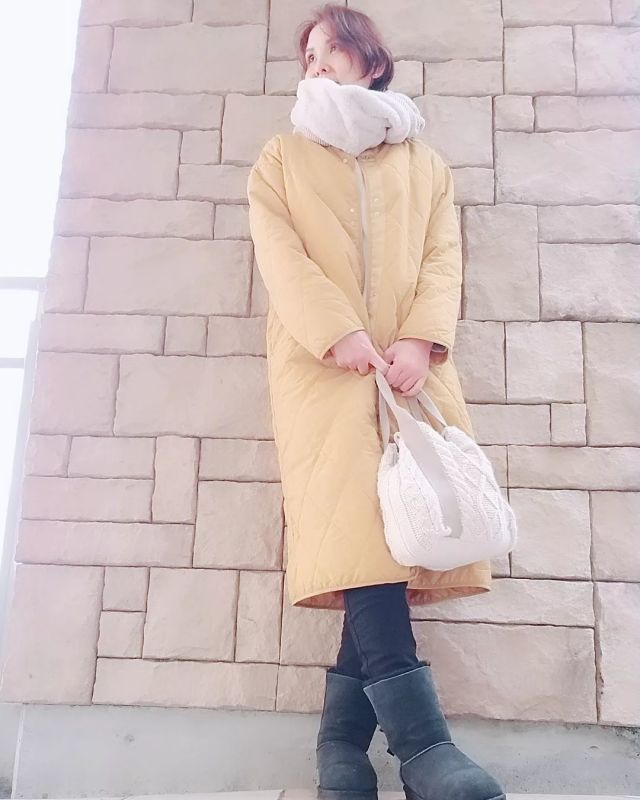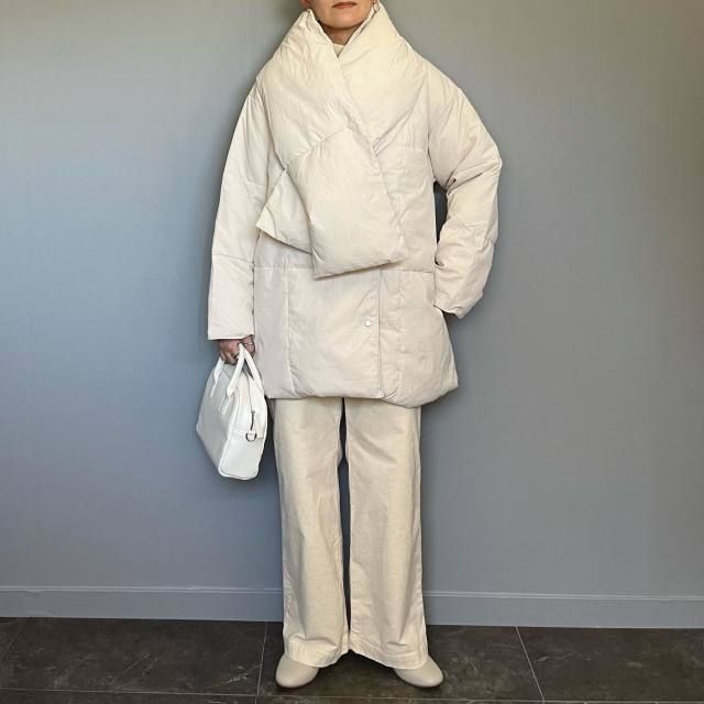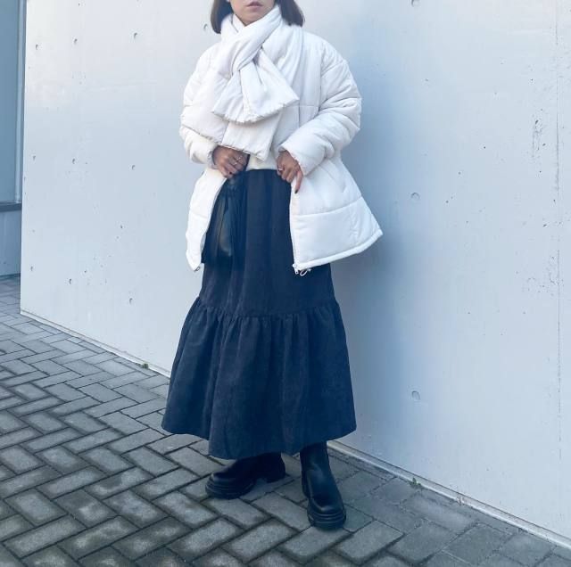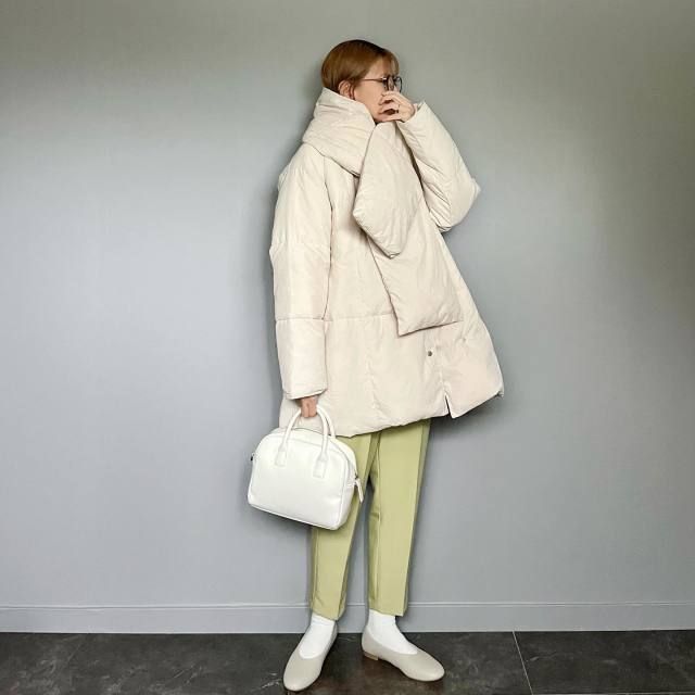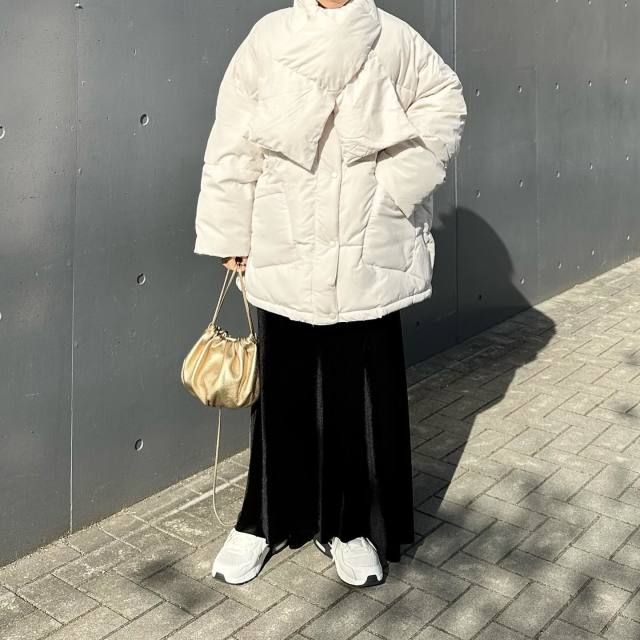 白マフラー×白アウターのコーデ