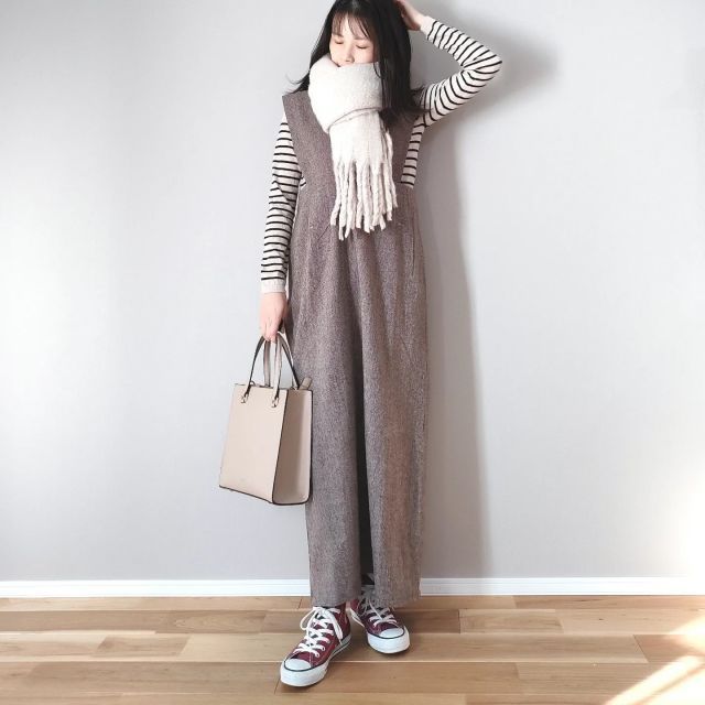 白マフラー×アウターなしのコーデ