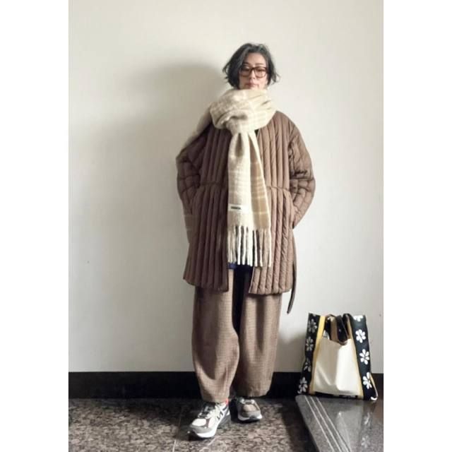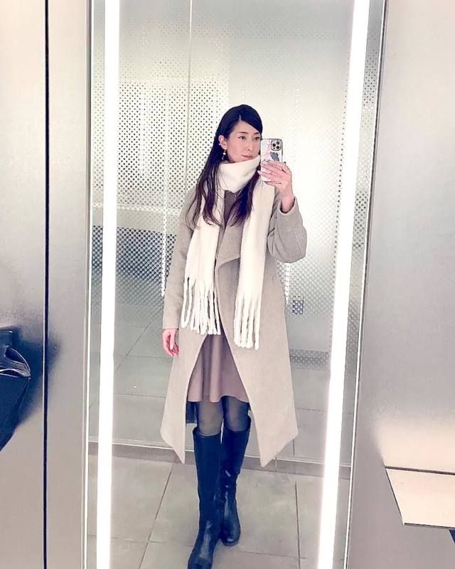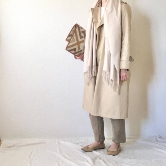 白マフラー×淡色アウターのコーデ