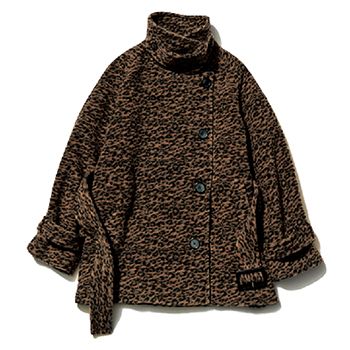 レオパード柄コート/SLY(バロックジャパンリミテッド) 柄が小ぶりかつ暗いトーンで、装いにもなじませやすい。チンストラップつきのスタンドカラーやウエストベルトなど、どことなくきちんと見えるディティールでシックに。