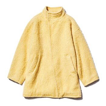アルパカ混の糸を使用した、リュクスな起毛感のウール地。首元のスナップボタンは開閉具合によって、自在なアレンジが可能。アクセ感覚のチェーンつきバッグを添えて、親しみのあるレディライクなルックスへ。