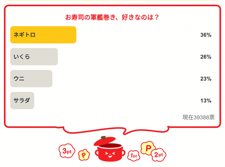 3. 「お寿司の軍艦巻き、好きなのは?」<回答数39,388票>【教えて! みんなの衣食住「みんなの暮らし調査隊」結果発表 第443回】