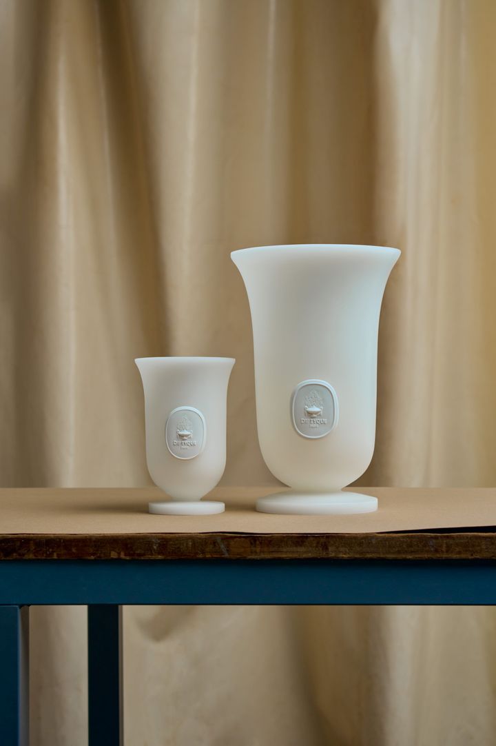 左から、<a href="https://www.diptyqueparis.com/ja_jp/p/small-wax-vase-manulena-deco00712.html" target="_blank" rel="nofollow">「フラワーベース ホワイト」スモール¥18,920</a>、<a href="https://www.diptyqueparis.com/ja_jp/p/large-wax-vase-manulena-deco00713.html" target="_blank" rel="nofollow">「フラワーベース ホワイト」ラージ¥29,590</a> Hearst Owned