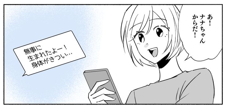 ナナちゃんは無事に女の子を出産。送られてきた可愛い赤ちゃんの写真を眺めていると、わが子の小さい時のことを思い出して、懐かしくなります。家族で話し合って、ナナちゃんと赤ちゃんに会いに行くのはもう少し落ち着いてからにすることに。