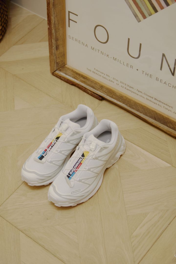 本格的なトレイルランニングができるスペックを持つ「サロモン」の名品“XT-6”。一度履くと、ほかのスニーカーには戻れないかもと思うほどの圧倒的な快適さ! 特筆すべきは、どんなに動いても歩いても頑丈なタフさと、都会でもなじむ洗練されたデザインを両立している点。とりわけ白なら、ハイテクなディテールが軽やかになり、日常でもクリーンに印象に。シューレースを結ぶ必要もなく、瞬時にフィット感を調整できるところもお気に入り。