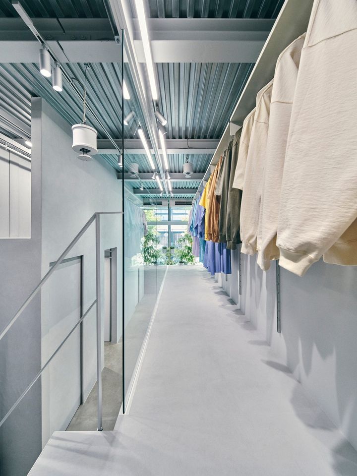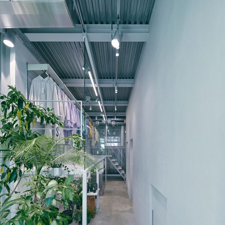 「できるだけ余計なことをしない。解体を前提にした⼤きな改修は⾏わず、既存の構造を活かしながら、インストールするような感覚で空間を整えました。空間⾃体が主張しすぎず、植物や⾐服といった要素が⾃然に⽴ち上がる構成になっていると思います。体験としても『つくられた感じ』より、『そこにあるものをそのまま⾒ている』感覚を⼤切にしました」と語る。