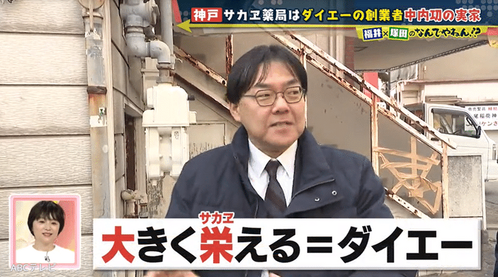 道谷先生いわく中内氏は、「最初に『主婦の店ダイエー薬局』というのをつくったんですね。薬局なんですけど日用品をたくさん売っている今のドラッグストアの形態ですね。あれを考えたのは実は中内さん」とのこと。「この薬局をベースにして、ご自身の会社を大きくしていった」そうだ。