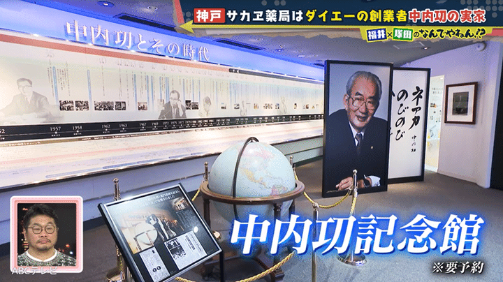 今では当たり前なスーパーのプライベートブランドを初めて開発したのも、中内氏が創業したダイエーだ。サカヱ薬局は、流通の革命児である中内氏の原点となる建物で、彼が自身の理念を教育に活かそうと開学したのが流通科学大学。そして構内に再現されたサカヱ薬局は、その功績を称えた記念館だった。