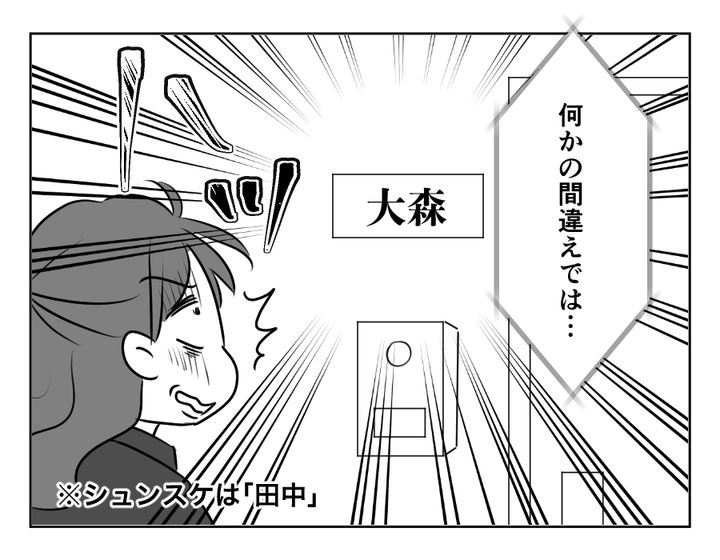 なんと! シュンスケさん、いなかったーーーー! 表札も変わっていたのです。あれ? もしかしてカツコさん、シュンスケさんたちの部屋、間違えていませんか? いやいやそんなことはありません。そう、正真正銘シュンスケさん一家は、引っ越してしまったのです。それもカツコさんに内緒で……。きっとこれが今のシュンスケさんにできる精一杯の反抗なのでしょう。