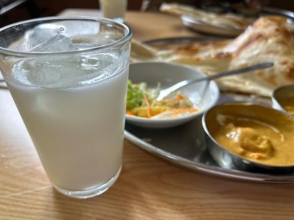 ドリンクはラッシーを注文。カレーと一緒に飲むならラッシーでしょ!