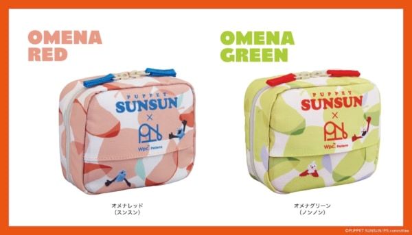 ・パペットスンスン×Wpc. Patterns はっ水スクエアポーチ(2,420円) 素材:ポリエステル100% サイズ:幅15cm×高さ13cm×マチ7.5cm カラー:オメナレッド(スンスン)/オメナグリーン(ノンノン) ✔はっ水加工あり
