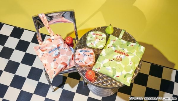 りんごをモチーフにしたWpc. Patternsの人気テキスタイルデザイン”オメナ”から顔をのぞかせるスンスンとノンノンの雑貨も、パペットスンスンファンにはたまらないラインナップです。また、商品にはクリアなタグが付いています。