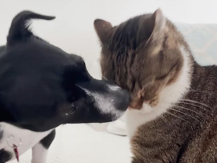 「誰かと一緒って幸せだニャ」ひとりっ子だった猫さんが子犬さんを受け入れ、すっかり仲良しな家族へ