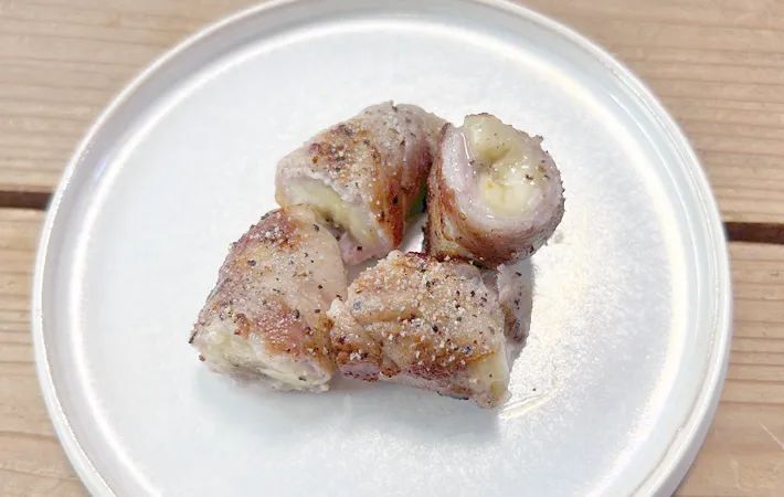 そんな固定観念を軽く裏切ってくれたのが、バナナを豚バラ肉で巻いて焼くという、なんとも斬新なレシピ。