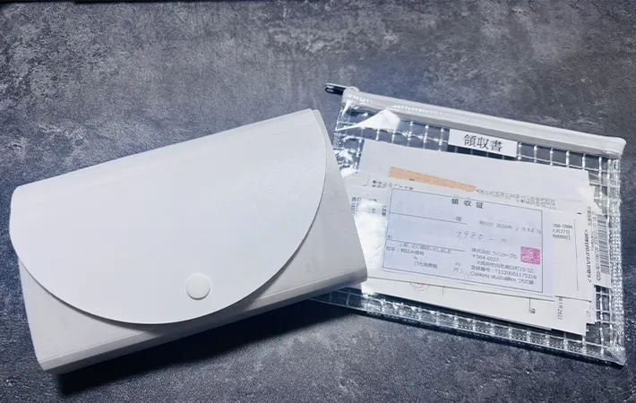 これに加えて、その月にもらった領収書を一時的に入れておくための『チャック袋』や『小さめのケース』を1つ用意してください。
