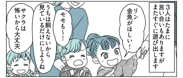 子どもたちはスーパーボールすくいをしていました。3人でいるとたまにこうやって言い合いもありますが、それも一瞬のこと。またすぐにいつものように遊び出します。