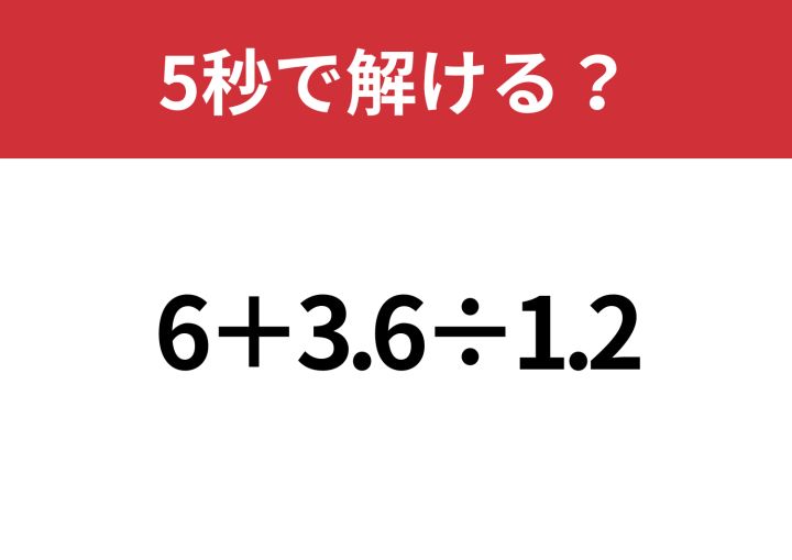 3. あるコツを知っている人は楽勝かも?「6+3.6÷1.2」5秒で解ける?